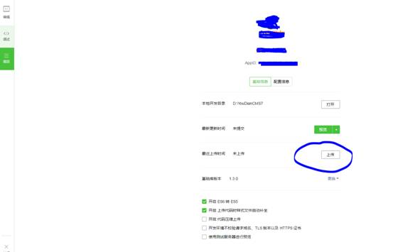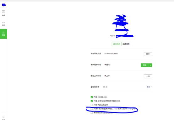 8、在“微信开发者工具-项目-基础信息”里,去掉“开发环境不校验请求域名、TSL版本以及HTTPS证书”